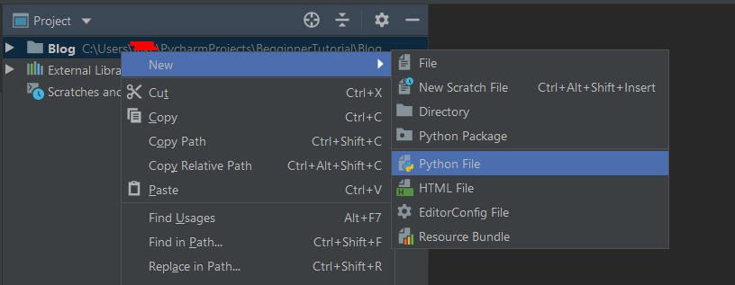 Click Python File. You will create JUST a python file and named it whatever you want, I’ll name it “MyFirstPythonFile.” Press the ENTERĀ when you’re done. You should see your new python file in front of you now.
